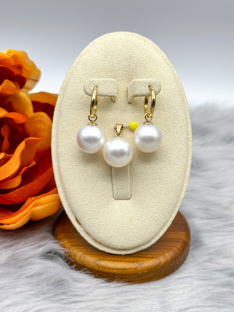 13mm South Sea Pearls Hoop Dangling Earrings and Pendant