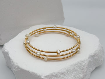 Lustrous, untreated, White Freshwater Pearls Bangle in micron settings.