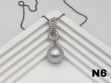 N6 - 13.5x14mm Bluish White South Sea Pearl Pendant with Chain