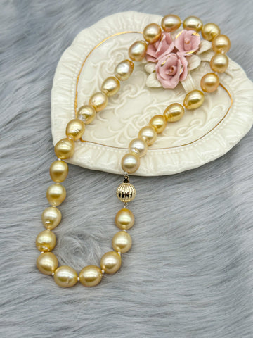 Lustrous, untreated, Golden South Sea Pearls Choker Necklace with 14k Solid Gold Clasp.