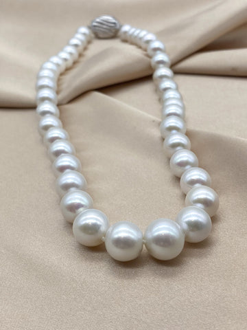 Lustrous, untreated, White South Sea Pearls Choker necklace with 925 Sterling Silver clasp.