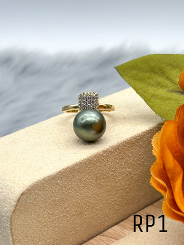 RP1: 12.3mm Pistachio South Sea Pearl, Ring Size 6.5 (adjustable)