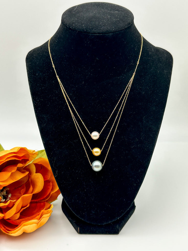 3-layer Tricolor Pearl Floating Necklace