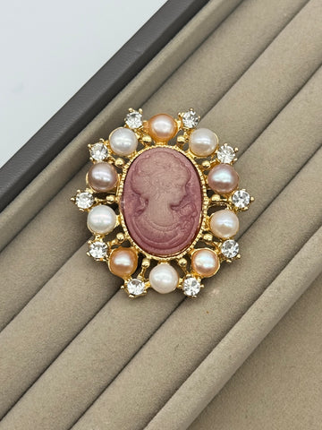 Lustrous, untreated, Pink, Peach, and White Freshwater Pearls Brooch in micron settings. It can also be converted as a pendant.