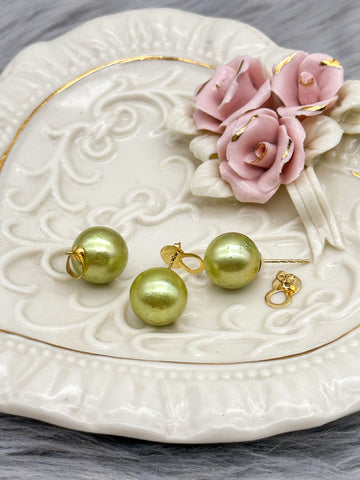 Avocado Green South Sea Pearls Stud Earrings and Pendant Set