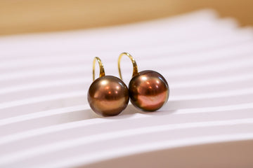 Lustrous, untreated, South Sea Pearls Spoon Dangling Earrings in 14k Yellow Gold settings.